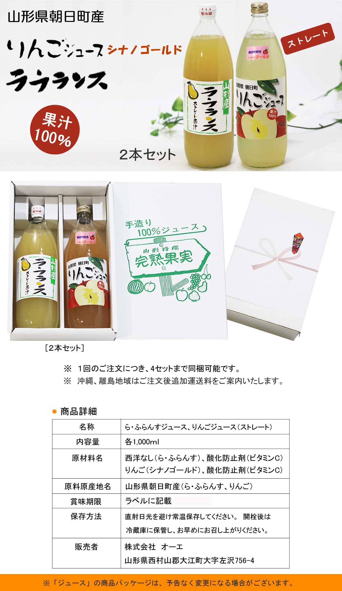 山形の名産品をお届けする 愛郷オンラインショップ 果汁100%ジュース りんご(シナノゴールド)、ら・ふらんすジュース 1,000ml 2本セット【朝日町産果実】 価格: ¥2,000 (税込) [ポイント還元 20ポイント~] 販売期間: 数量: セット 在庫: 在庫切れ 在庫 在庫切れ 返品についての詳細はこちら